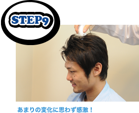 「3~4ヶ月ぐらい続ければ、髪のボリュームの変化にきっと実感できます!」と、発毛技能士の山口さんが自信満々におっしゃっていました。