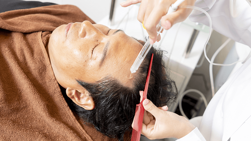 当店の施術は薬を使用しませんので、勃起不全・多毛症・肝機能障害など、薬による様々な副作用が発生する心配がございません。体への影響が不安な方でも安心して受けていただけます。またAGAクリニックによっては注射器を使用し、発毛有効成分を頭皮に注入するといった治療が存在し、痛みを伴う場合もありますが、当店には痛みが発生する施術は一切ございません。痛みが不安で薄毛改善を諦めている方は、ぜひ当店にご相談ください。