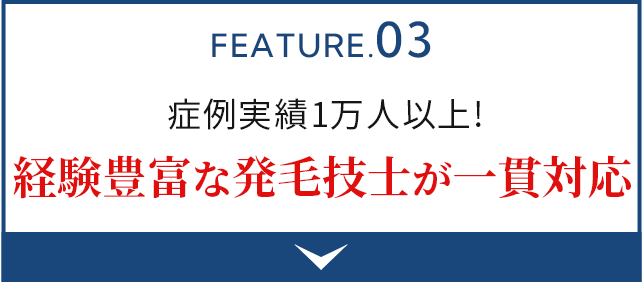 - 皮膚および毛髪などに関する医学的知識や美容に関する知識、発毛・育毛に関する施術技術を持つことが認められた人材です。3ヶ月以上の研修や厳しいテストに合格した者にのみ施術資格が付与されます。他の発毛サロンでは経験の浅いエステティシャンが施術を行うことがありますが、当店は経験の豊富な発毛技能士のみが施術を行うため、常に統一された技術でお客様に効果の高いスピード発毛技術をご提供します。