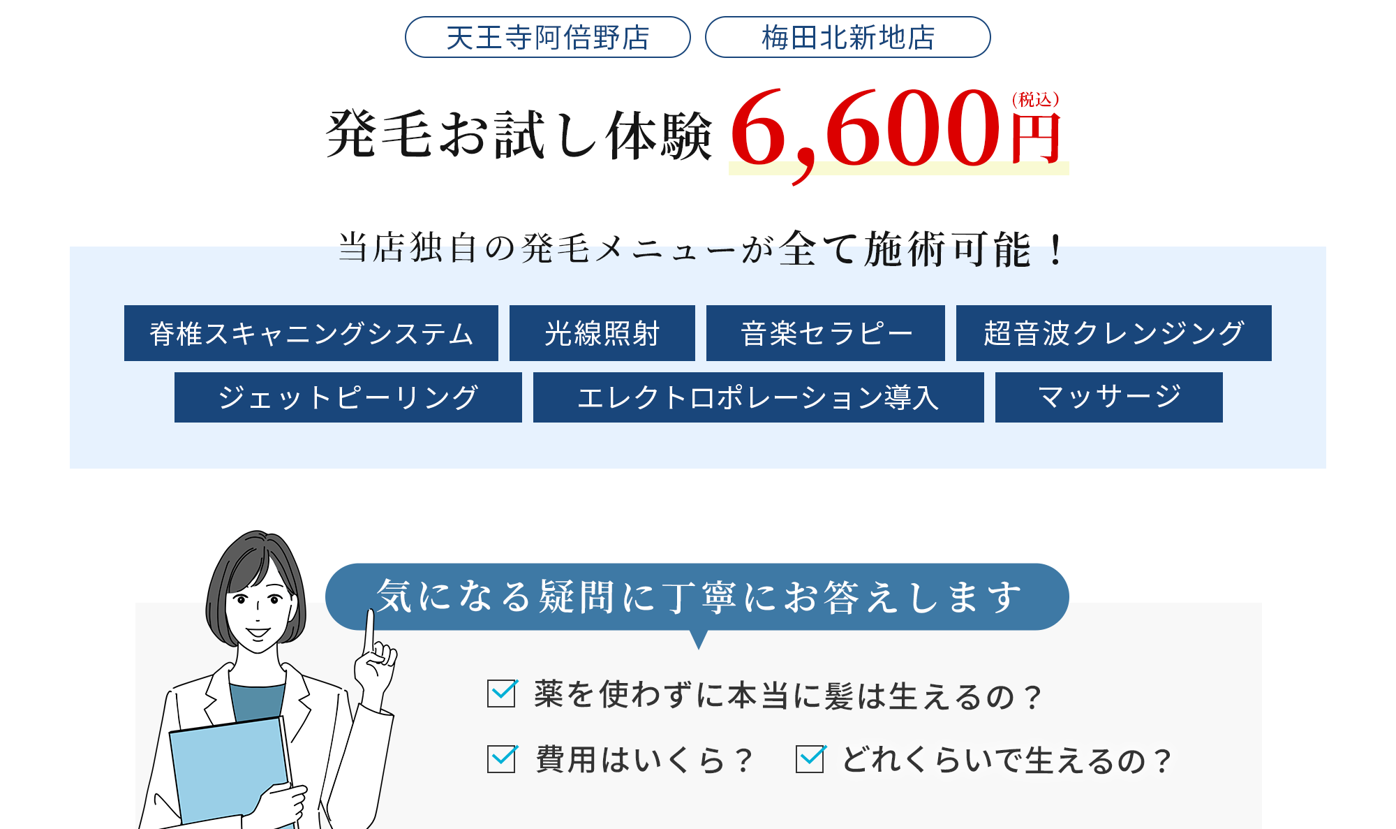 また、薄毛の原因や発毛のメカニズム、施術内容についても説明いたします。 -