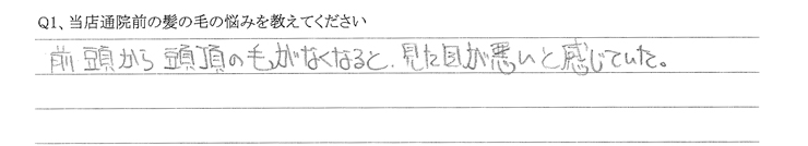 A.前頭から頭頂の毛がなくなると、見た目が悪いと感じていた。