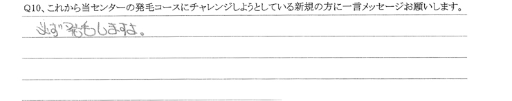 Q.これから当センターの発毛コースにチャレンジしようとしている新規の方に一言メッセージお願いします。