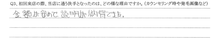 Q.初回来店の際、当店に通う決手となったのは、どの様な理由ですか?(カウンセリング時や発毛画像など)