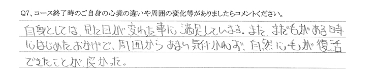 Q.コース終了時のご自身の心境の違いや周囲の変化等がありましたらコメントください。