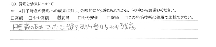 コース終了時の発毛への成果に対し、金額的にどう感じられたかお答えください。