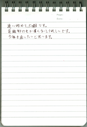 通い始めて5ヵ月目です。前頭部の毛が濃くなってうれしいです。