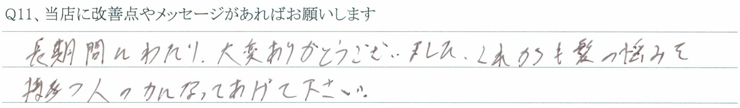 メンタルもふくめ自分自身の改善につながります。 - Q.当店に改善点やメッセージがあればお願いします。