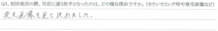 - Q.初回来店の際、当店に通う決手となったのは、どの様な理由ですか?(カウンセリング時や発毛画像など)