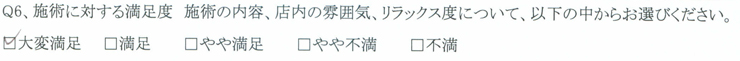 - Q.施術に対する満足度、施術の内容、店内の雰囲気、リラックス度についてお答えください。