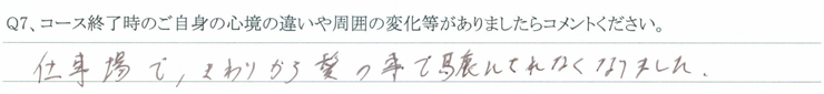 - Q.コース終了時のご自身の心境の違いや周囲の変化等がありましたらコメントください。