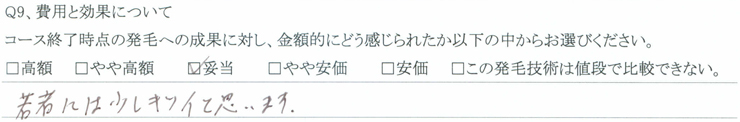 コース終了時の発毛への成果に対し、金額的にどう感じられたかお答えください。 - A.妥当