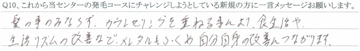 若者には少しキツイと思います。 - Q.これから当センターの発毛コースにチャレンジしようとしている新規の方に一言メッセージお願いします。