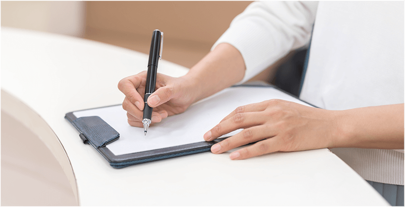 ご予約の日時にご来店ください。受付後、はじめに薄毛や抜け毛の状態を把握するため問診表をご記入いただきます。