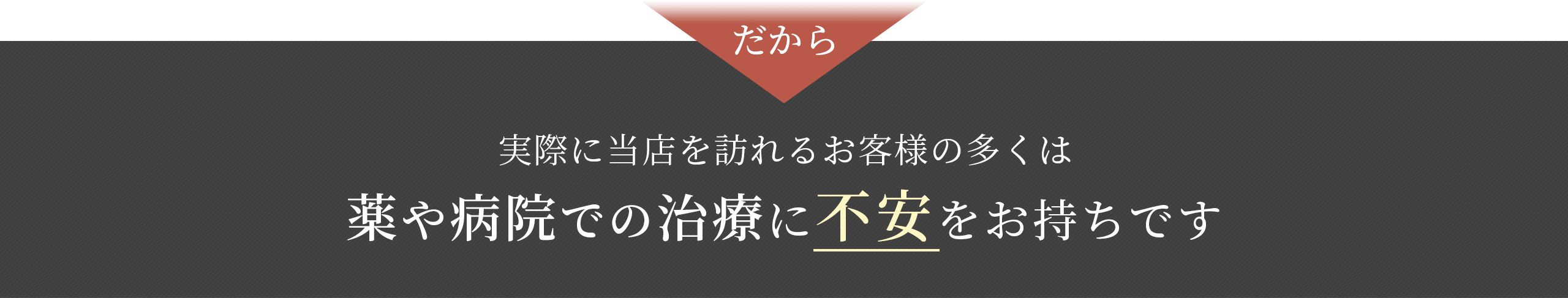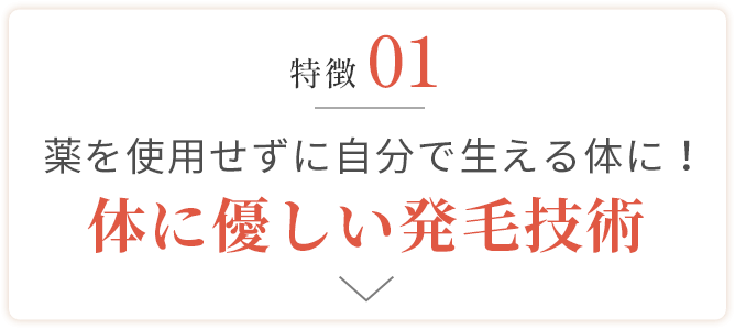 当店では自力で解決不可能な混ざり合った薄毛の原因に対して、根本的かつ総合的に解決できる技術で、お客様ご自身の力でしっかりと発毛できる体に導くため、薬を使わずに発毛することが可能です。