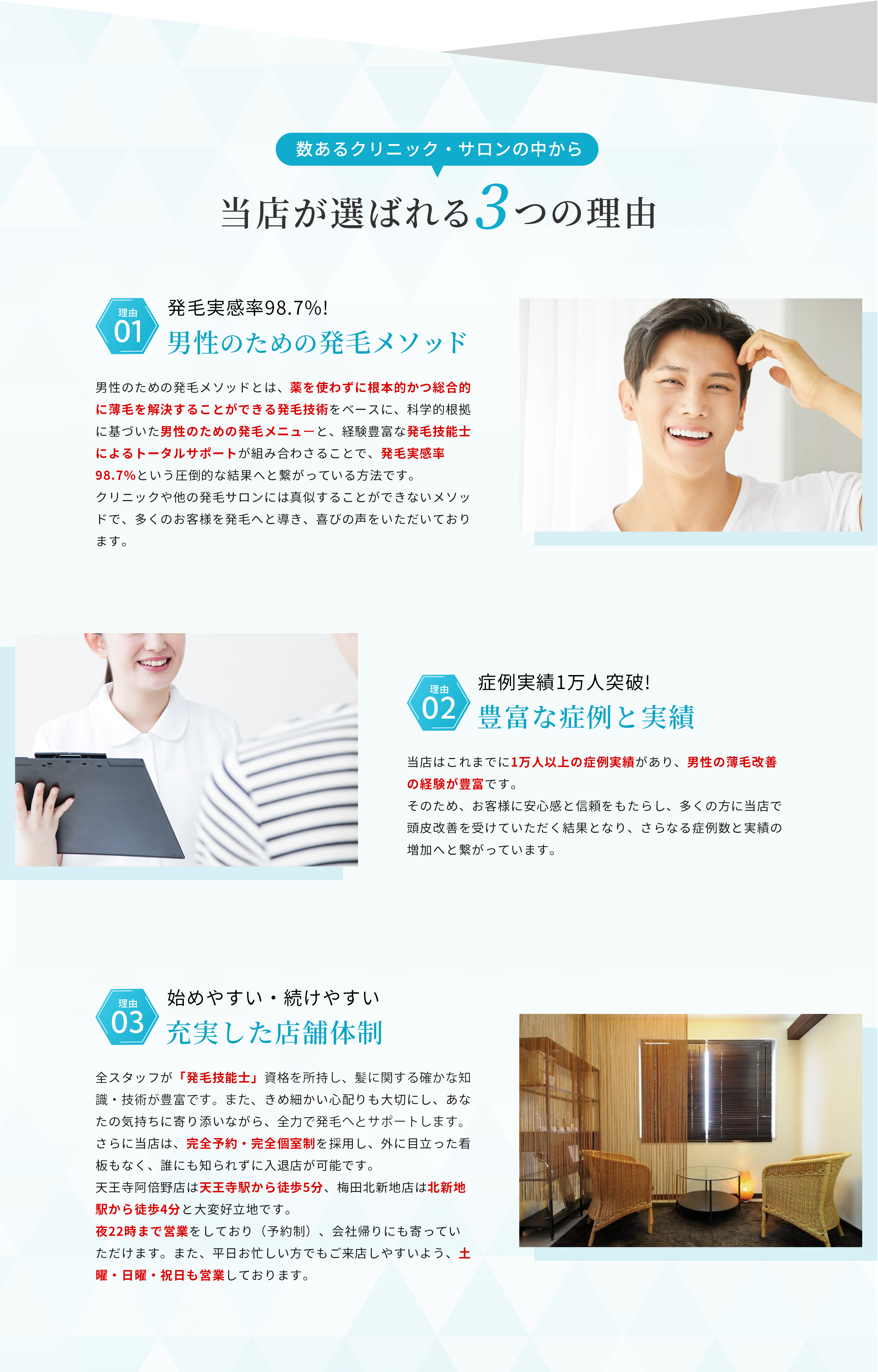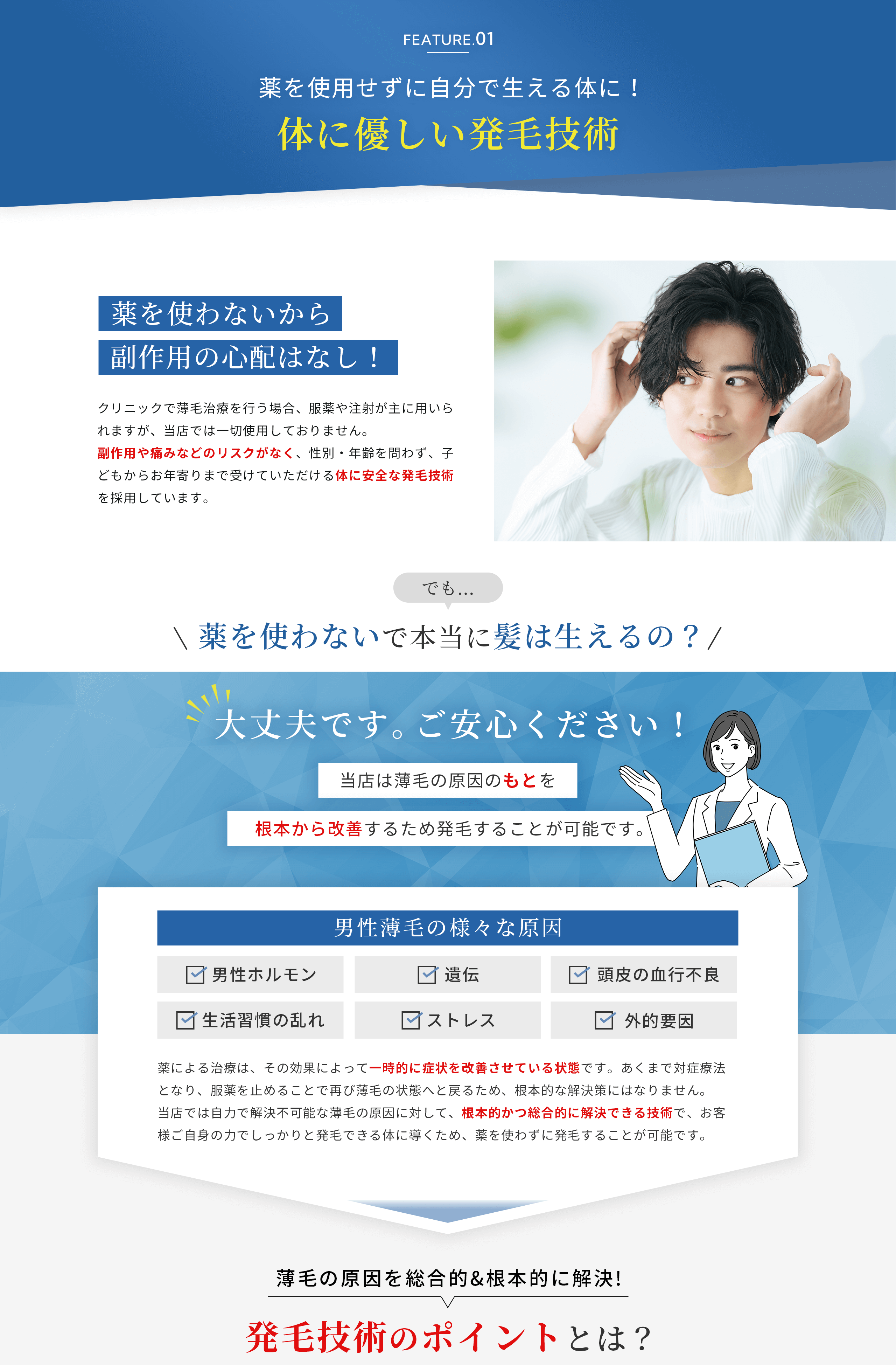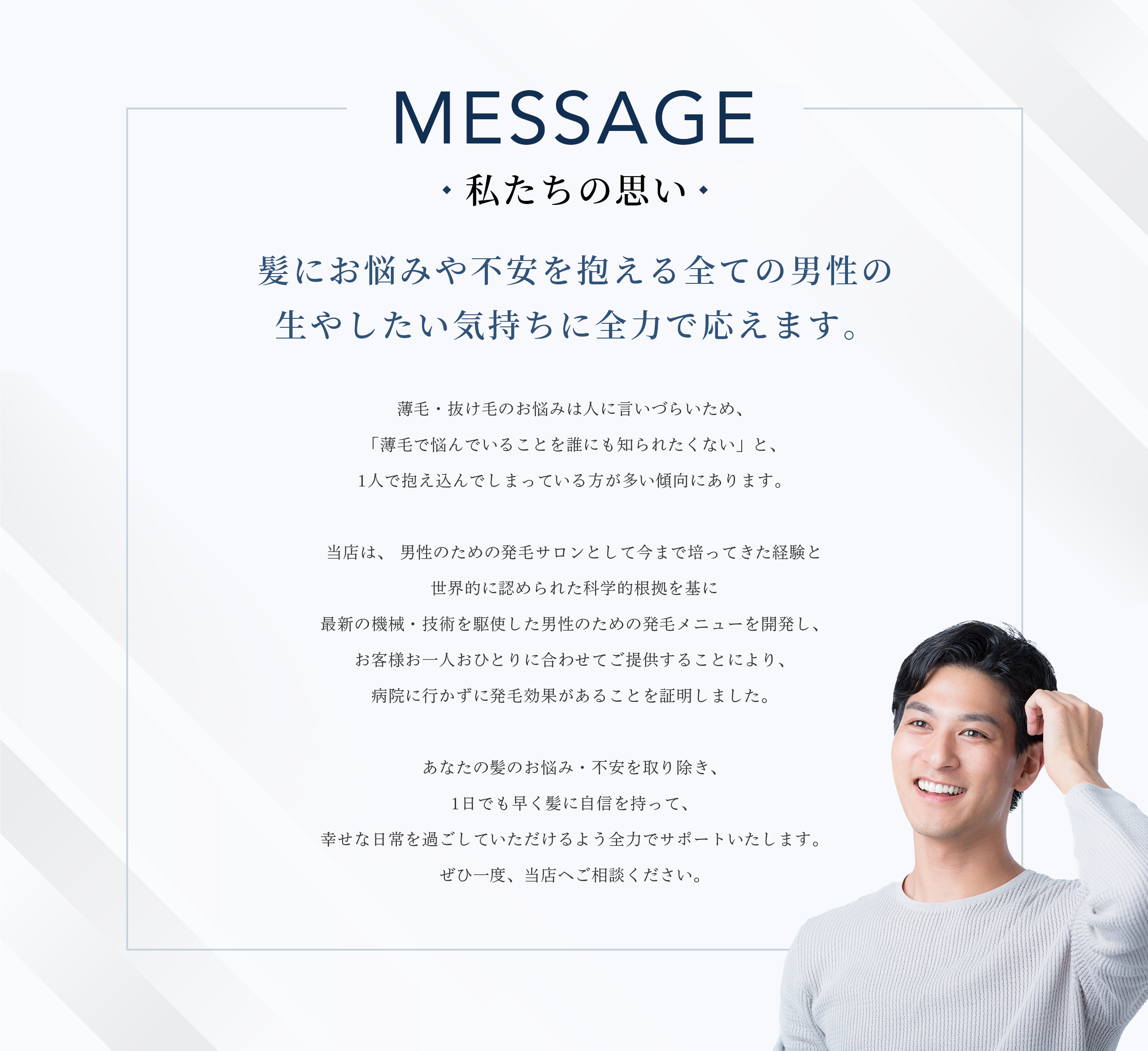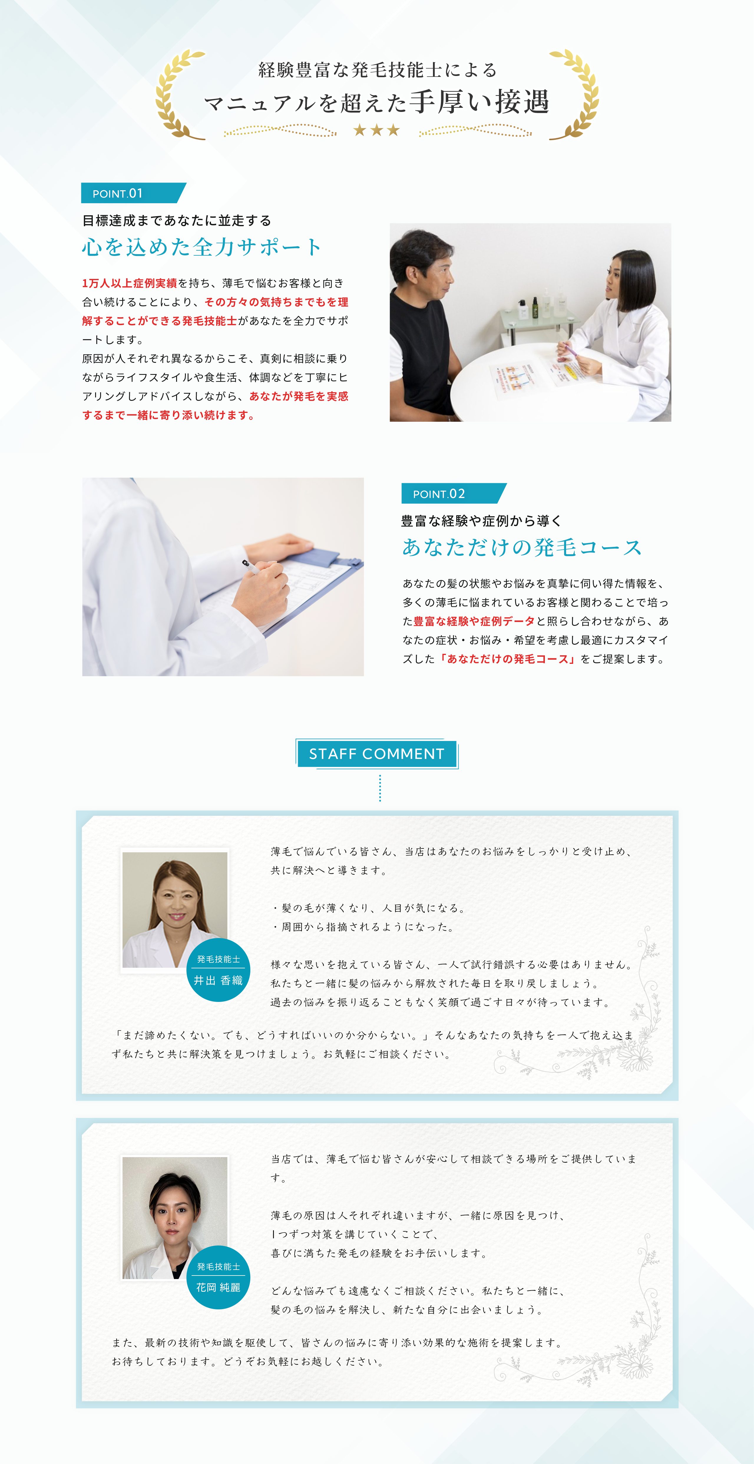 また、薄毛の原因や発毛のメカニズム、施術内容についても説明いたします。 -