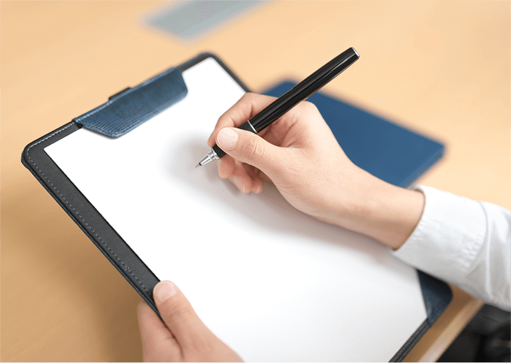 受付後、はじめに薄毛や抜け毛の状態を把握するため問診表をご記入いただきます。 -
