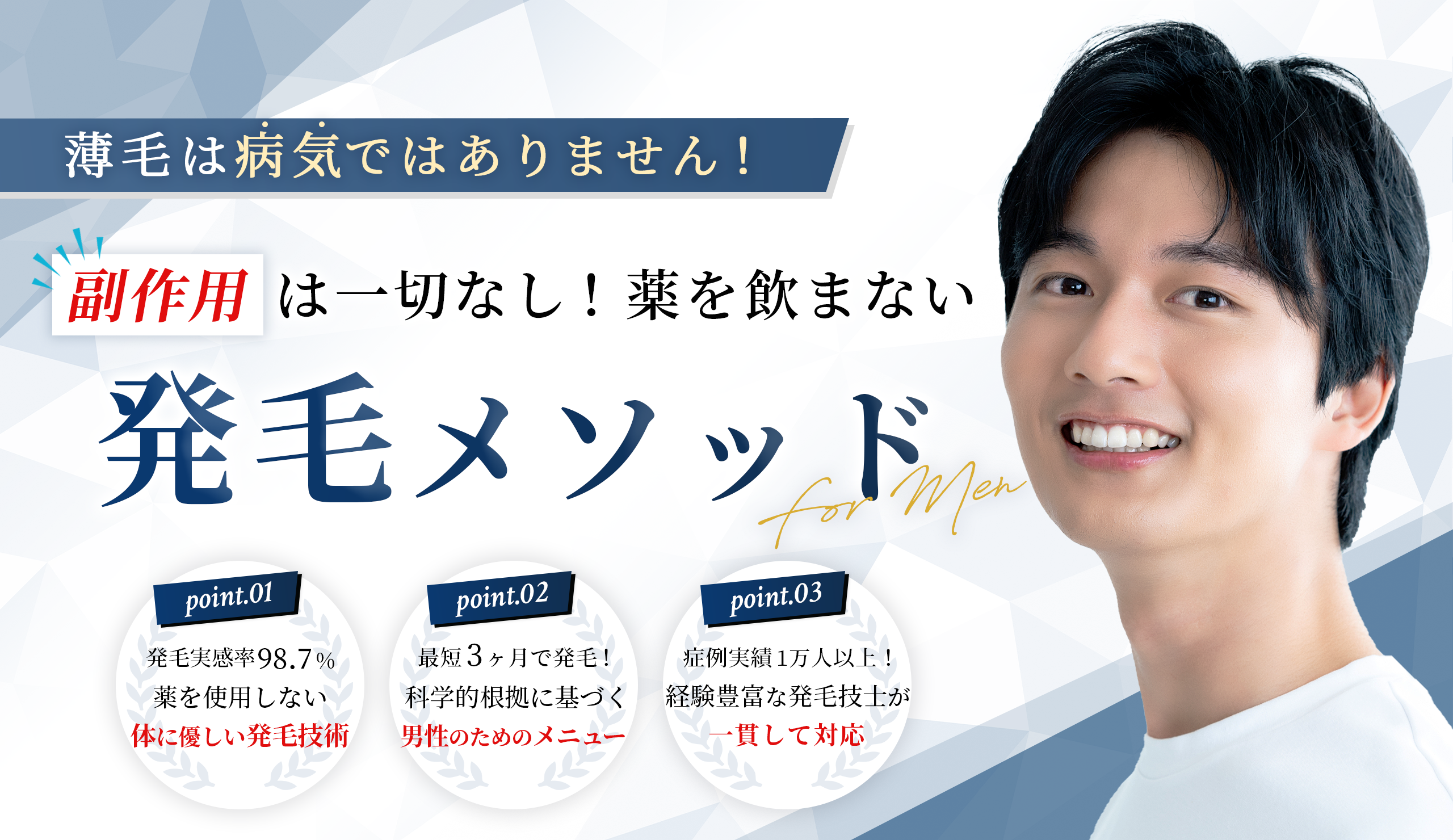はい。当店では薄毛の原因に徹底的にアプローチし、頭皮の環境を整えたり生活習慣の改善を行うことで、お客様ご自身の力でしっかりと発毛できるようになるため、薬を使わずに発毛することが可能です。