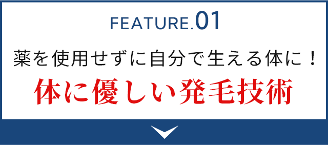 血管拡張剤に頼らない一生ものの発毛を手に入れるために、当店は血管を根本から強くする血流改善を行い、お客様を発毛へと導きます。